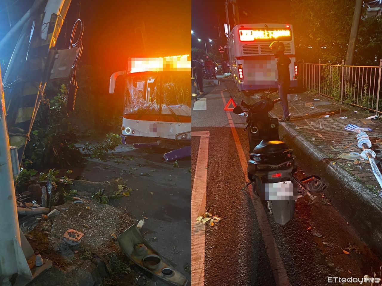 ▲▼ 新北公車走山路自撞,40多名乘客受驚 。(圖/記者戴上容翻攝)