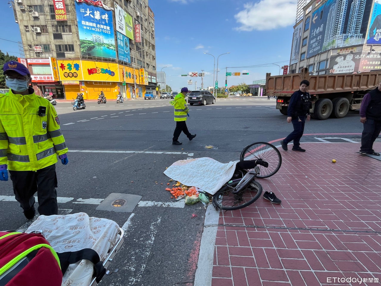 ▲桃園市中壢區今早發生一起砂石車撞自行車的死亡車禍。(圖/記者楊熾興翻攝,下同)