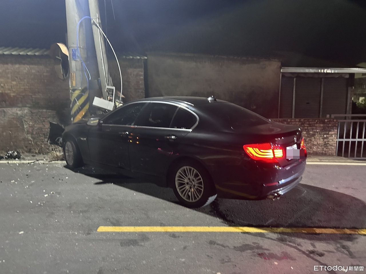 ▲林姓男子酒駕自撞,把電桿整根撞斷。(圖/記者唐詠絮翻攝)