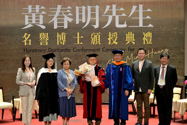 黃春明先生致詞時說:「現在的我就像電池一樣空空的,但經過這場典禮,各位再度幫我充飽電。」夫人林美音女士在名譽博頒授儀式結束後,獻上祝福的花束,黃春明先生在家人的環繞下合影,留下溫馨而美好的回憶。