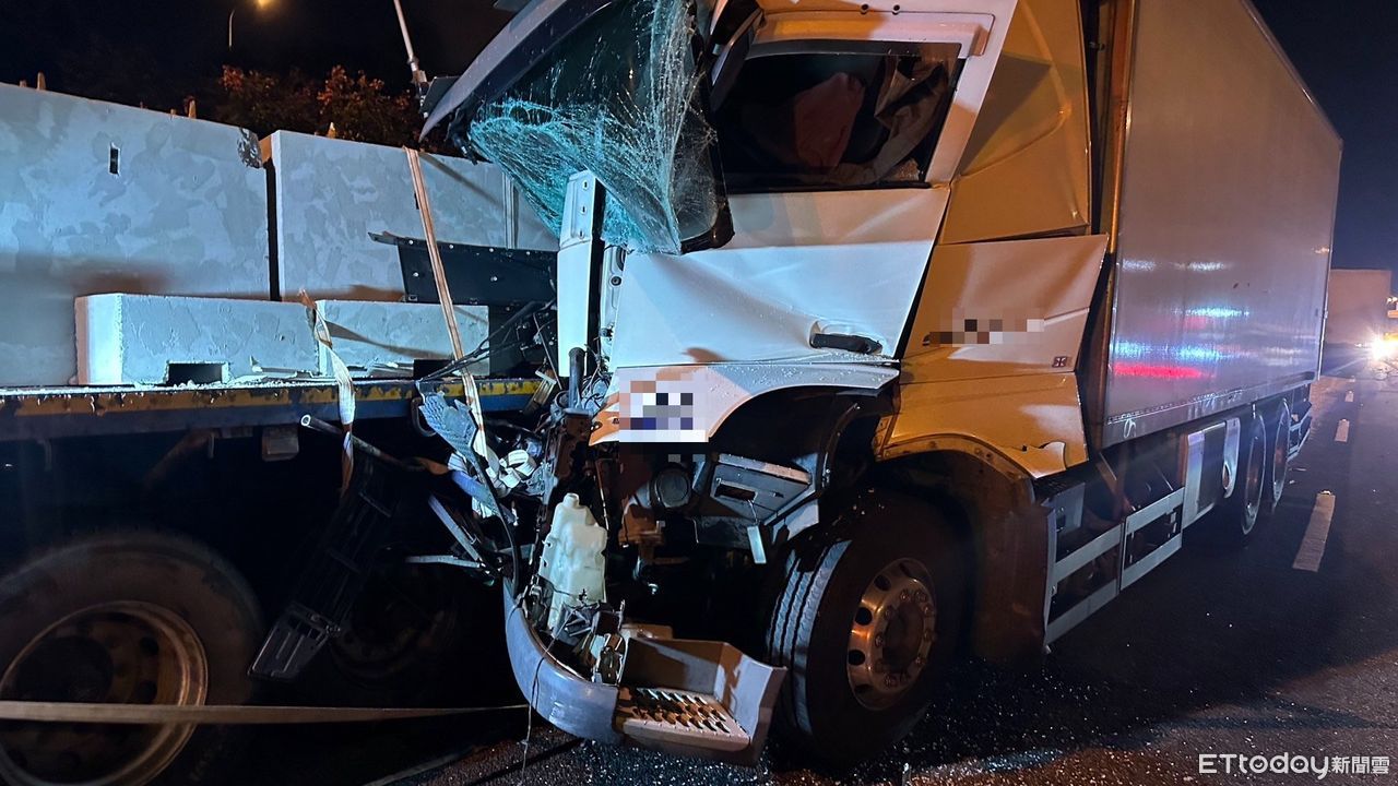 國道警方表赤,清晨0時28分國1北83.8K,一名林姓聯結車駕駛,疑因未注意前方動態,撞上前方由伍姓男子駕駛的半聯結車。林姓駕駛輕傷,經由119救護車送往竹北東元醫院。兩駕駛酒測值均為0,至於車禍原因及責任歸屬,有待警方進一步調查。