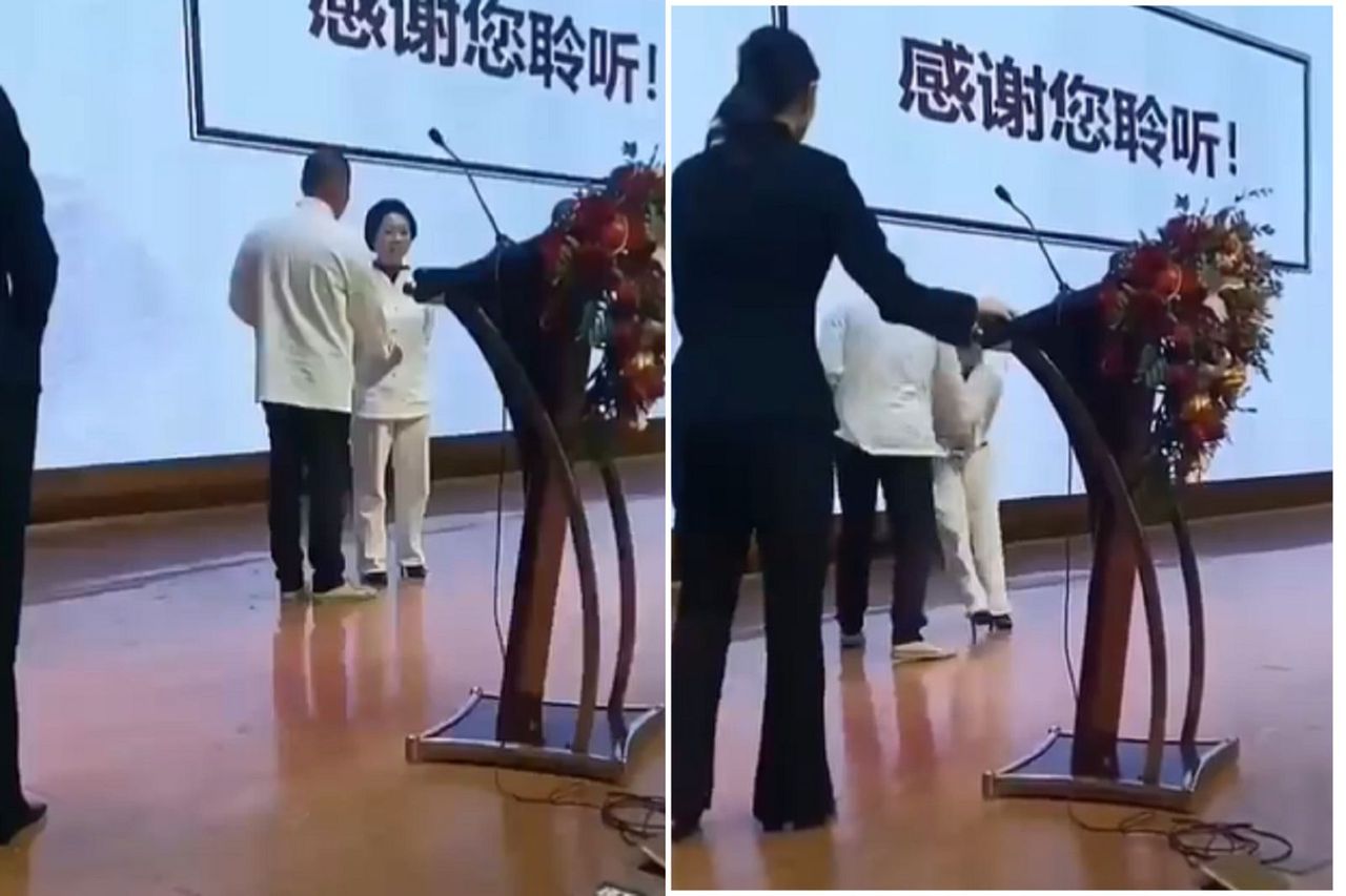 影片可見,一名大師向觀眾展演點穴,並請一名大媽上台當示範模特兒。當大師為大媽點穴時,只聽見大媽突然高分貝「啊」的驚聲尖叫,隨後大媽整個人跌坐在地,嚇壞現場不少觀眾。連徐曉冬也不禁直呼:「這哪裡是點穴啊,這是武術大師活生生給大姐一個重勾拳啊~太狠了...武德高。」