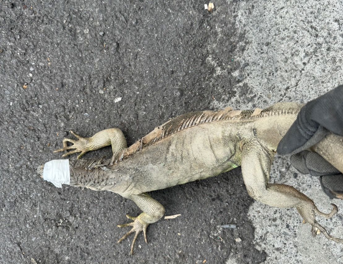 農業局森保科長朱健明表示,自2020年8月,農委會正式公告綠鬣蜥為有害生態環境、人畜安全之虞之原非我國原生種陸域野生動物之種類。該隻綠鬣蜥,經丈量吻肛長43公分,尾巴部分一般則不測量,經鑑定是1隻母蜥。該隻綠鬣蜥腹部仍是綠色,背脊仍有黑色,身體疑因脫皮顏色變淡變白。