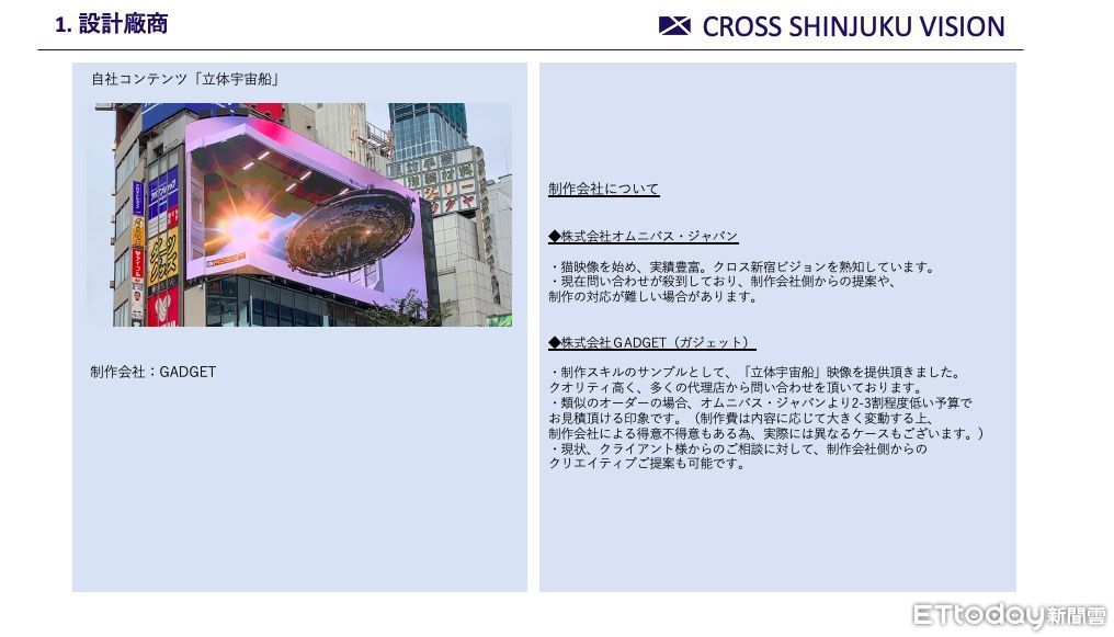 桃園市觀旅局這次大型3D廣告的設計,由Cross Shinjuku Vision公司統籌,也就是民眾熟知的3D巨貓廣告設計端,並由製作立體宇宙船的GADGET公司製作,成品第一時間也是由Cross Shinjuku Vision公司官方帳號曝光,廣告由日本專業的廠商提案,設計師也是日本人,對方希望透過以日本人的觀點提高日本人對桃園的關注度,對此,桃園市政府也表示尊重。