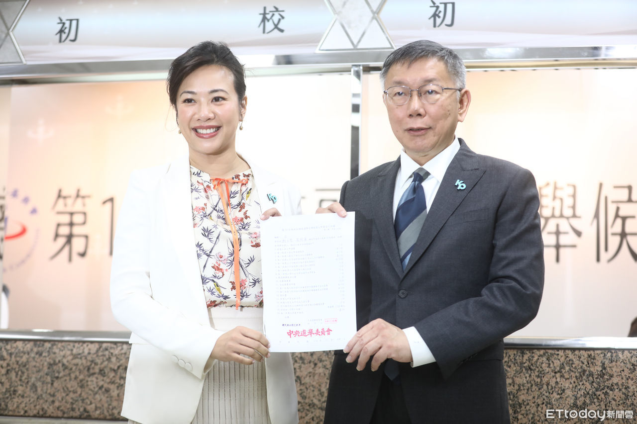 ▲民眾黨總統、副總統候選人柯文哲、吳欣盈登記參選。(圖/記者林敬旻攝)