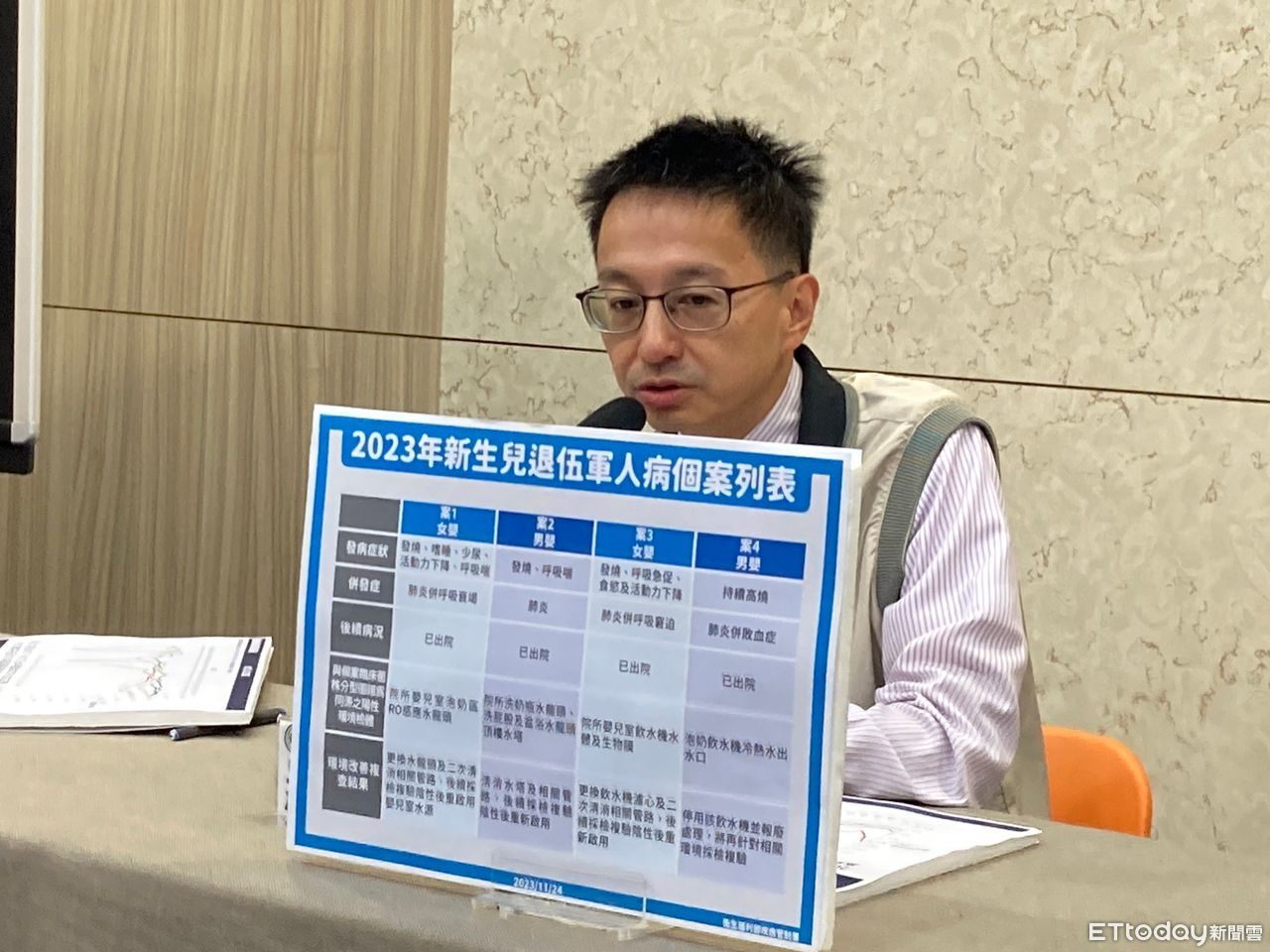 ▲國內今年出現4例新生兒退伍軍人病確定病例,疾管署副署長羅一鈞說明。(圖/記者洪巧藍攝)