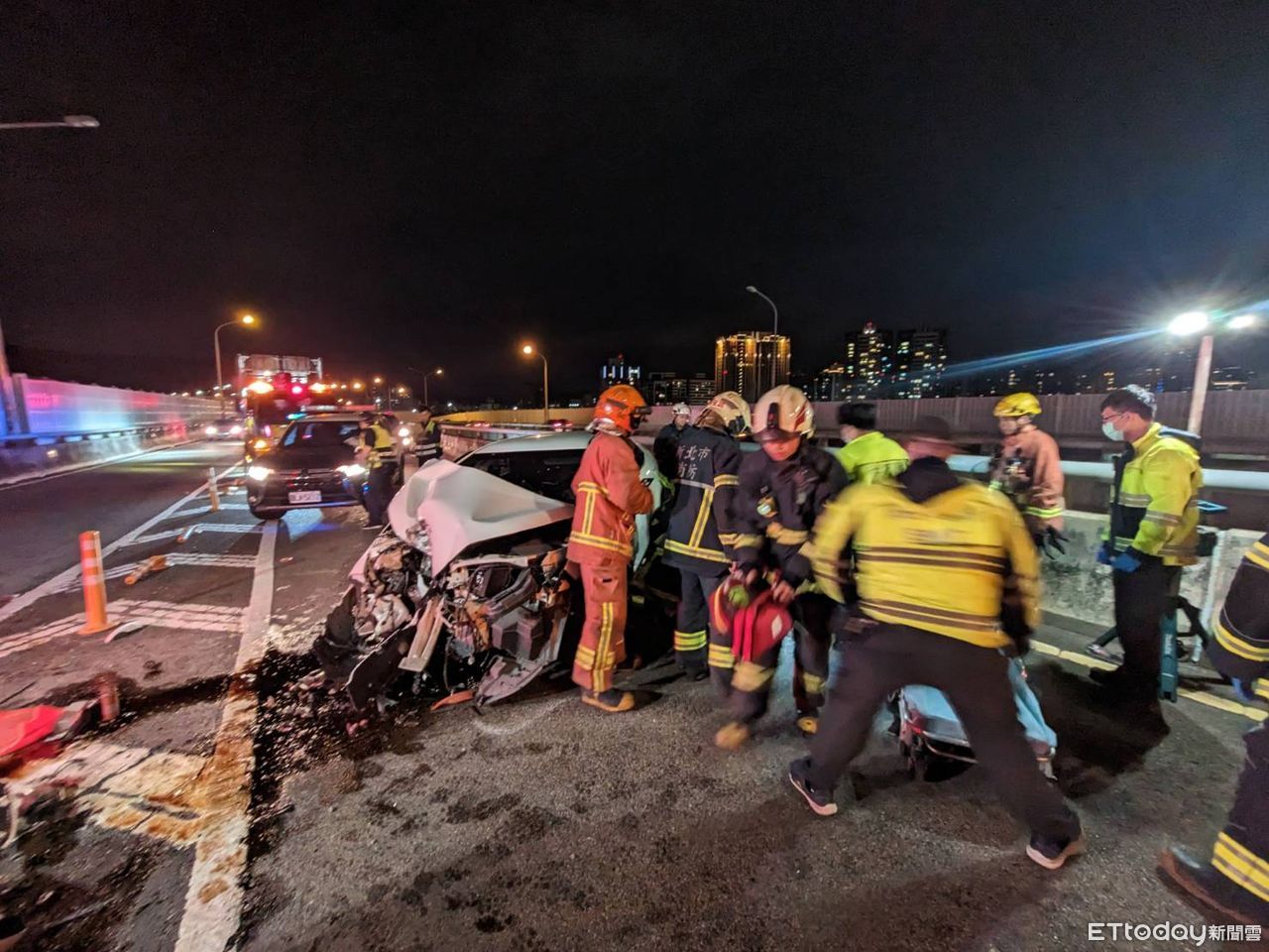 ▲▼ 駕駛自撞後受困車內命危,警消急到場將人救出 。(圖/記者戴上容翻攝)
