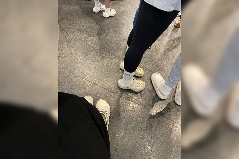 這名男子在「路上觀察學院」分享,近日走在路上時,看見了讓他感到不解的一幕,有許多人腳上穿著襪子,但鞋子並非選擇布鞋,而是洞洞鞋、拖鞋等款式,於是好奇發問,「這是什麼鞋呢?怎麼一群人這樣穿?」