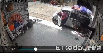 ▲廂型車突然下滑,阿嬤用身體奮力抵抗,卻仍遭拖走,最終車輛翻覆阿嬤慘遭壓死。(圖/記者林東良翻攝)