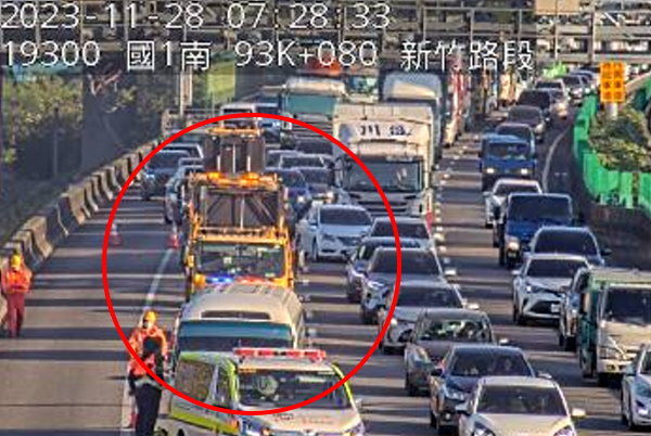 上班注意!高公局表示,今天6時58分,國道1號南向92.8K、新竹路段,發生2輛自小客車、1輛中型巴士追撞佔用外線事故,回堵5公里,請用路人小心駕駛。
