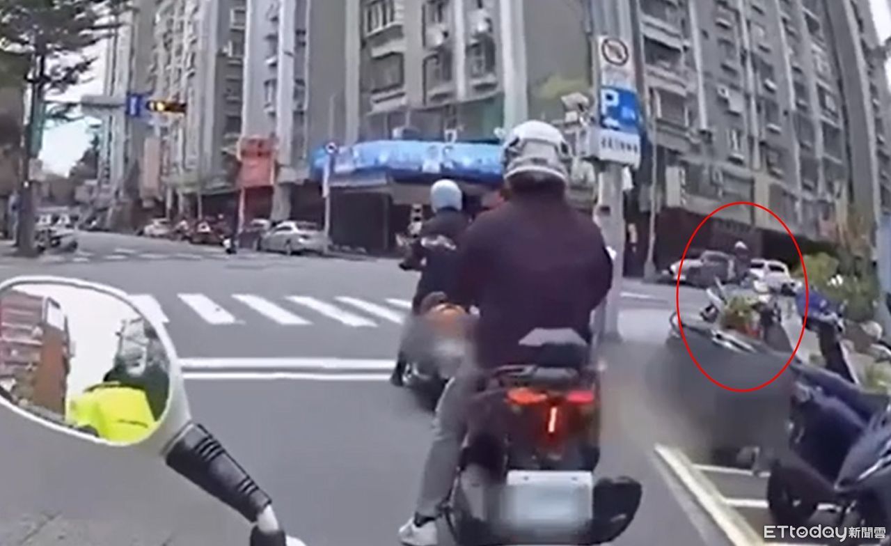 ▲林男無照騎車上人行道被開單(紅圈),又被抓包酒駕。(圖/記者邱中岳翻攝)