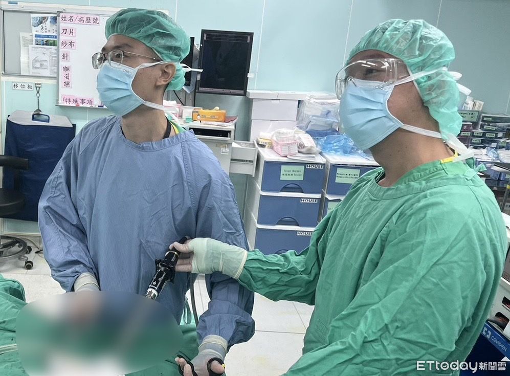▲衛福部南投醫院外科醫師許家榮(右)手術示意圖。(圖/衛福部南投醫院提供)