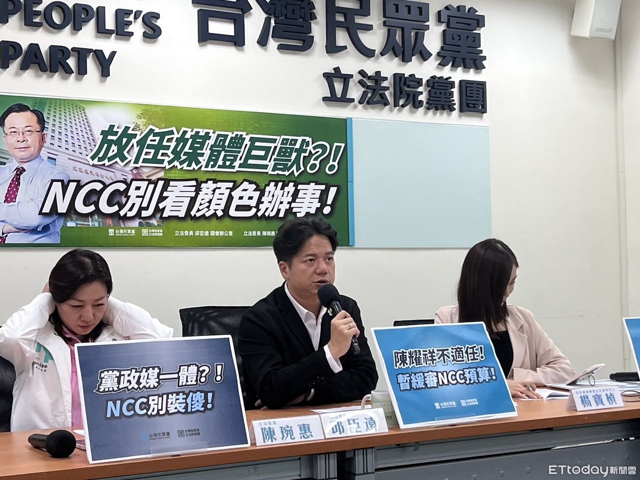 ▲民眾黨立委陳琬惠(左起)、邱臣遠、民眾黨發言人楊寶楨出席民眾黨團30日記者會。(圖/記者蘇晏男攝)