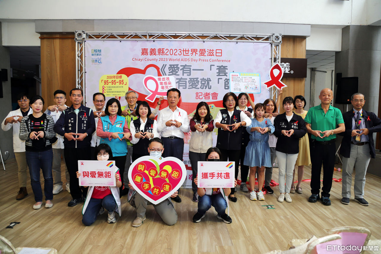 嘉義縣政府響應12月1日世界愛滋日,舉辦「愛有一套,有愛就篩」記者會,縣長翁章梁、疾病管制署南區管制中心副主任陳紫君等人以愛的神祕禮物開箱儀式,呼籲民眾重視安全性行為及定期篩檢,也宣告12月「愛滋篩檢月」篩檢送好禮活動,鼓勵攜伴篩檢,守護自己及伴侶健康。