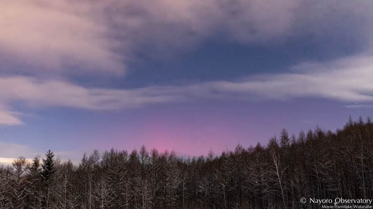 可能受到太陽大規模「閃焰」影響,日本北海道北部地區名寄市昨晚被觀測到夜空染上淡紅色的「低緯度極光」,被當地天文台及網友紀錄下難得美景。