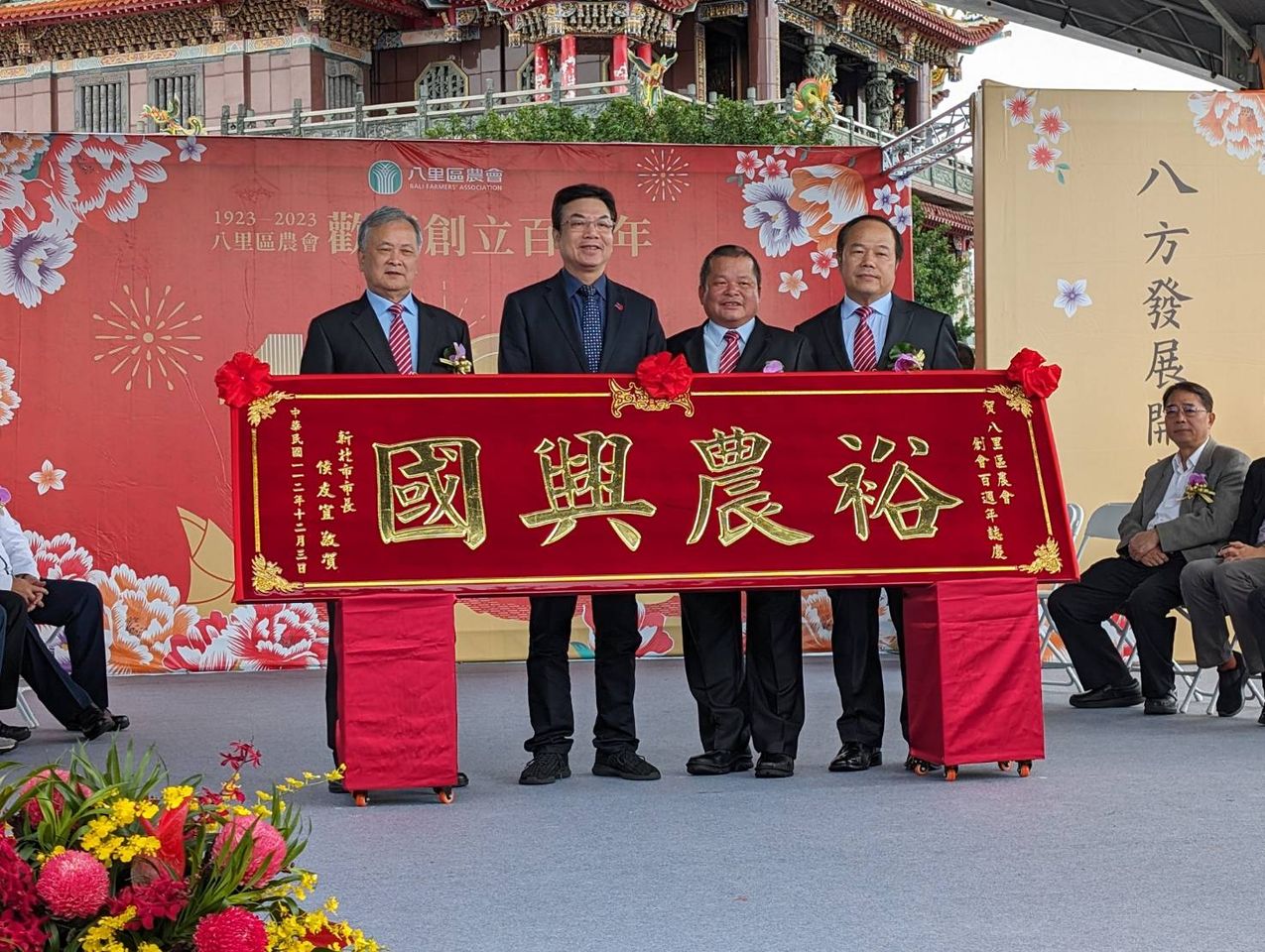 新北市八里區農會成立100周年,今(3日)上午在八里訊塘廣場(廖添丁廟旁廣場)舉辦盛大慶祝,現場有舞獅團、國樂社及舞蹈班展演祝賀,副市長劉和然與多位嘉賓共同切5層大蛋糕,一起為八里區農會慶生。另外為慶祝農會走過百年歲月,自12月4日至12月8日每天上午8時至下午4時在農會本會設立100年靜態展,歡迎各位鄉親蒞臨會場瞭解八里區農會與農友的成長及蛻變。