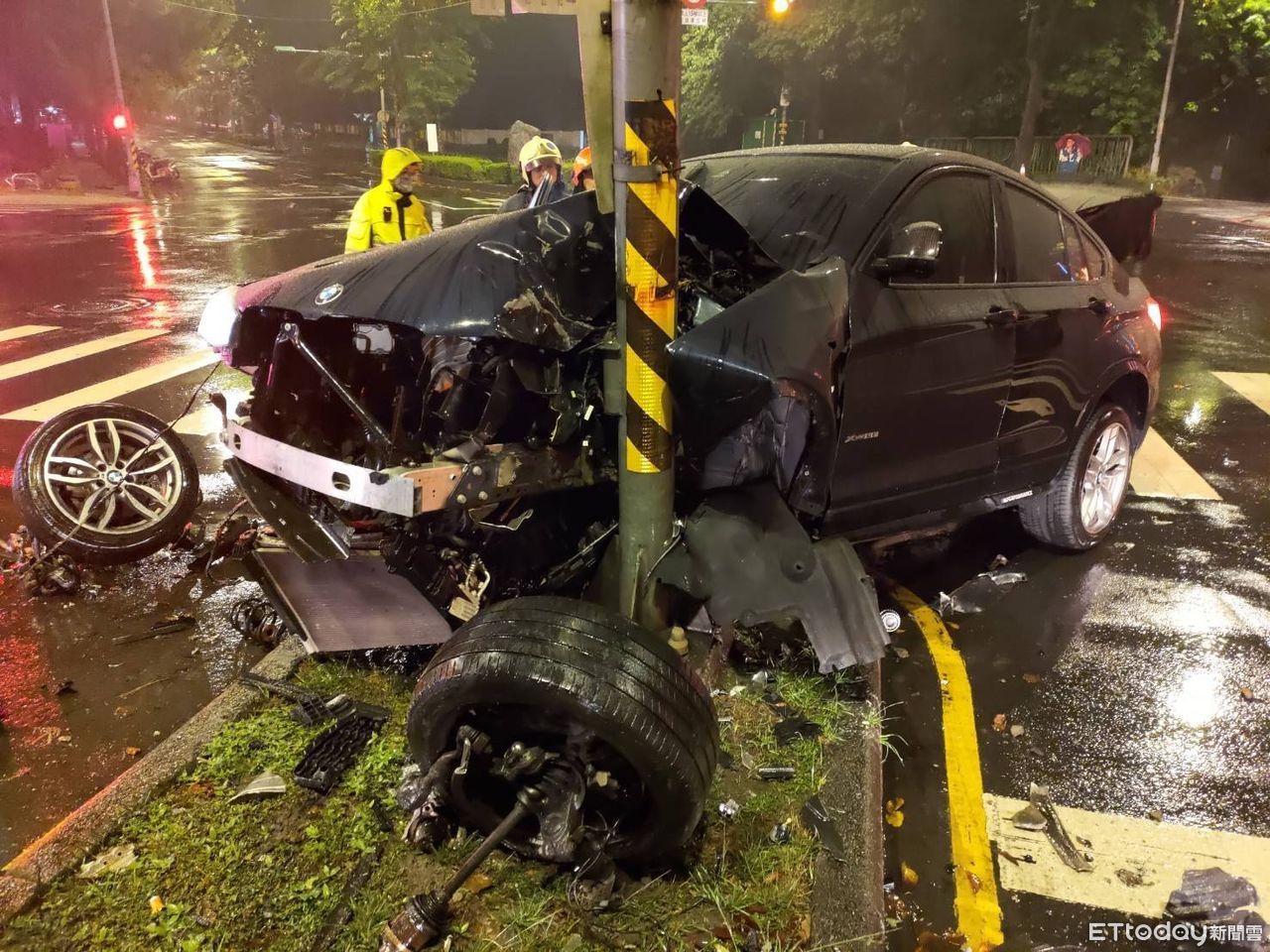 5日凌晨2時許,43歲劉姓女子開著新車價250萬元BMW X4休旅車,要返回三峽住處,行經樹林區佳園路三段與大成路口,疑在過彎處超車,又天雨路滑視線不佳,直接撞上中央分隔島,車內氣囊全部爆開,車頭幾乎全毀、前2車輪脫離。