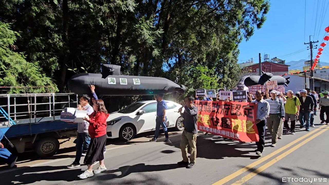 蔡銘軒今天帶同40至50位民眾手舉「南投縣政府認定馬文君住屋違建」各式布條和標語,抬著「海鯤號」充氣潛艇、充氣木馬,並高呼「潛艦國造護台灣」、「下架特權立委」等口號,一路遊行前往馬文君住處大門口,台灣基進黨發言人暨不分區立委候選人楊佩樺也到場聲援。