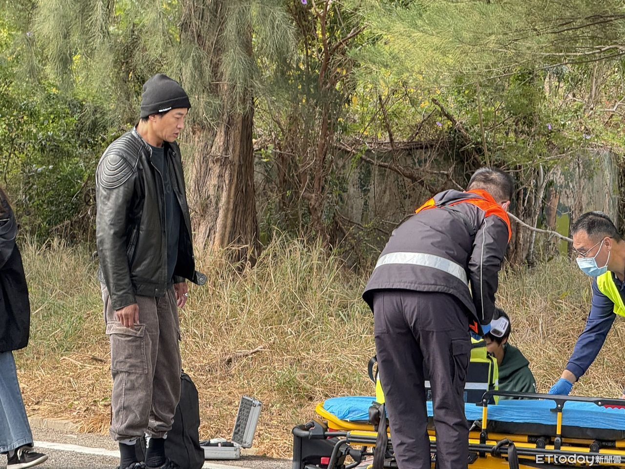 ▲何潤東(左)執導的劇組今爆意外,何駕駛的瑪莎拉蒂車尾被撞爛,副導演受傷送醫 。(圖/記林名揚翻攝,下同)