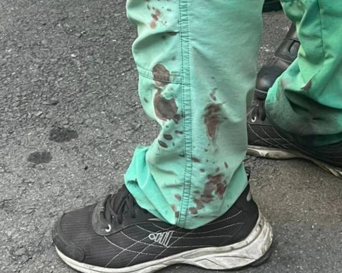 ▲郵務士被狗咬傷褲子沾滿斑斑血跡。(圖/翻攝自臉書伸港小鎮)