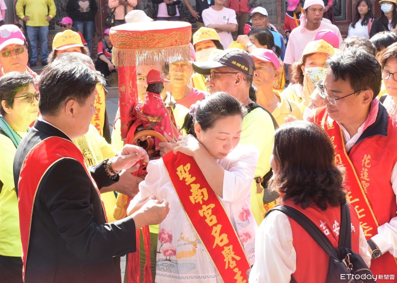▲台南正統鹿耳門聖母廟的「路跑媽祖」在16日上午11時返抵台南土城,在花蓮縣長徐榛蔚、立委傅崐萁親自恭送下回鑾。(圖/記者林東良翻攝,下同)