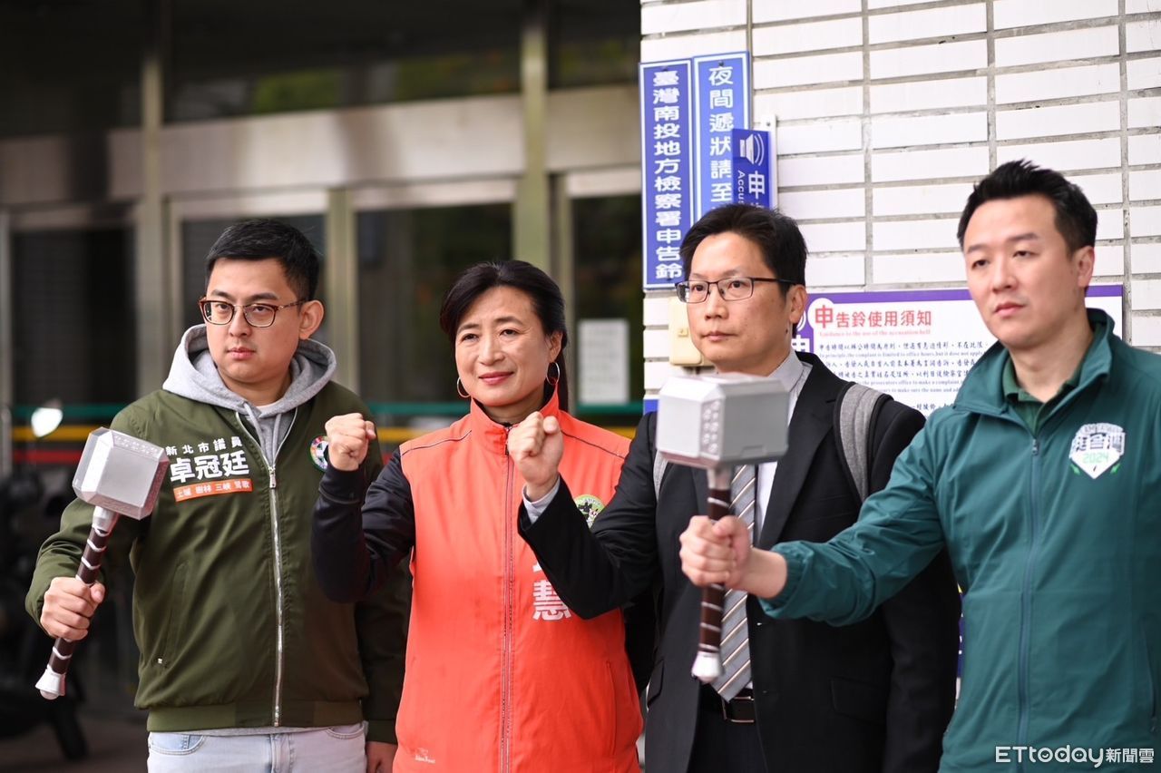 ▲綠委蔡培慧偕李正皓、卓冠廷赴南投地檢提告對手游顥意圖使人不當選。(圖/蔡培慧競選辦公室提供,下同)