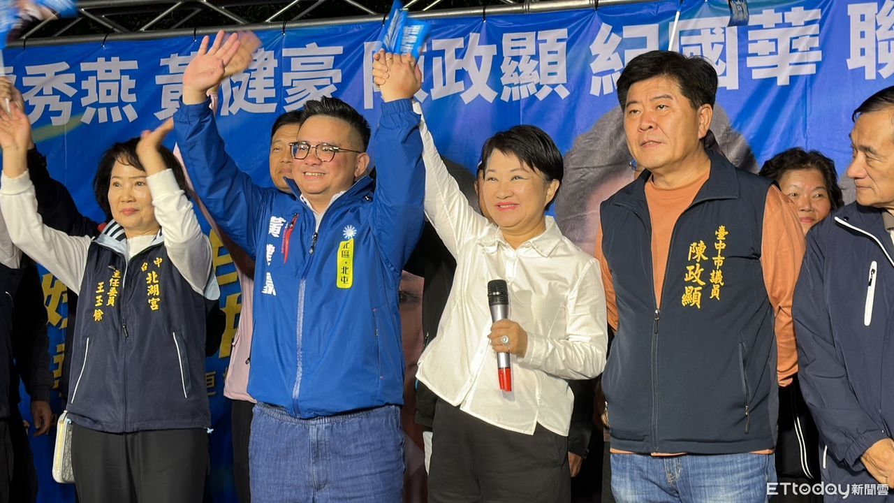 ▲台中市長盧秀燕今晚回到本命區北北屯替子弟兵黃健豪助選,受到鄉親熱烈歡迎。(圖/記者許權毅攝,下同)