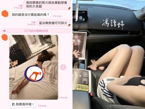「出賣一下閨蜜應該沒關係吧」,馮語婷18日在臉書社團「爆廢公社」PO出與閨蜜的對話截圖;照片顯示,馮語婷表示,上次她PO出閨蜜教她開車的照片,讓許多網友想看更多長腿,因此她願意出一杯飲料換對方的照片,讓網友開心。
