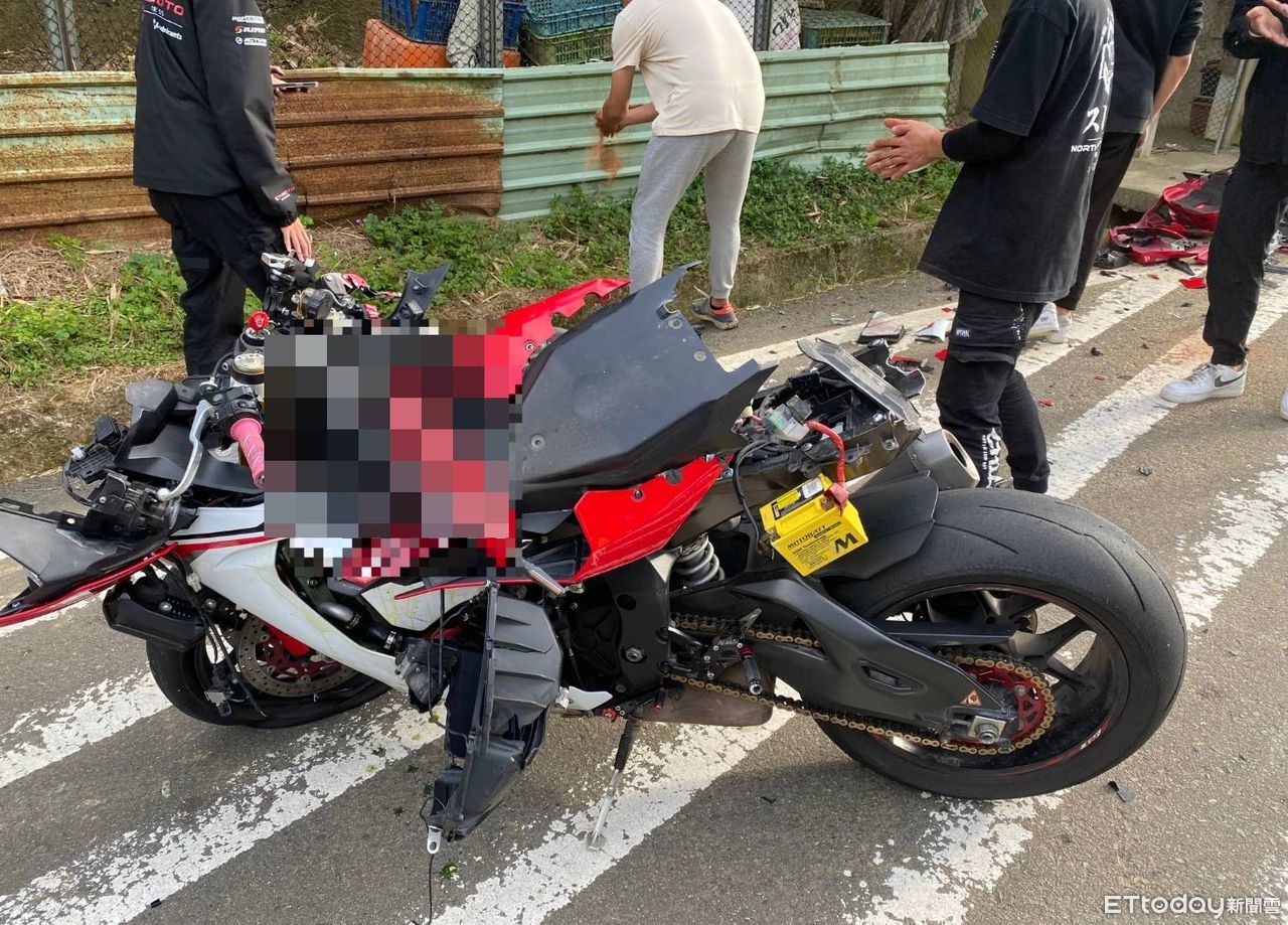▲台七乙線8.2K段桃園大溪段昨天下午發生重機騎士衝至對向車道,其中肇事重機毀損嚴重。(圖/記者沈繼昌翻攝)