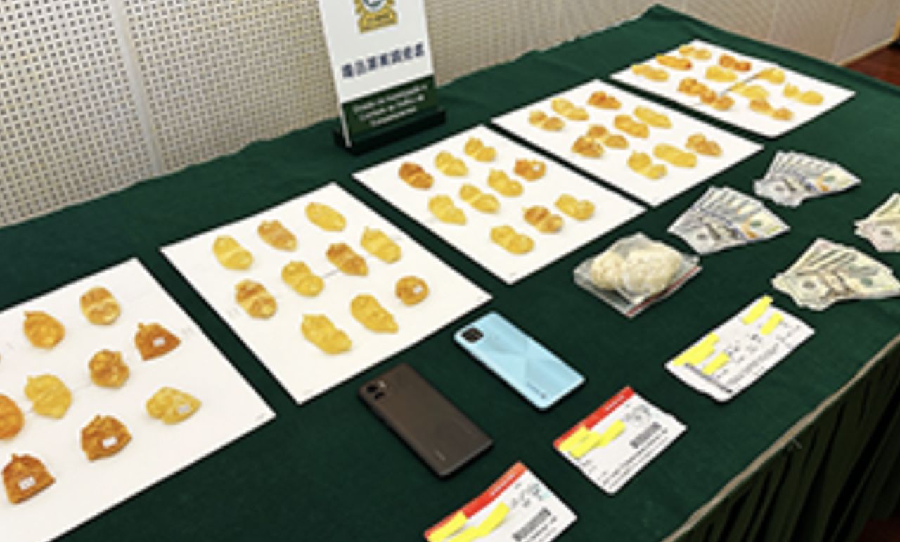 兩人吞下毒品後,隔天從秘魯先後飛往西班牙、香港,再從菲律賓飛往澳門時被查到。