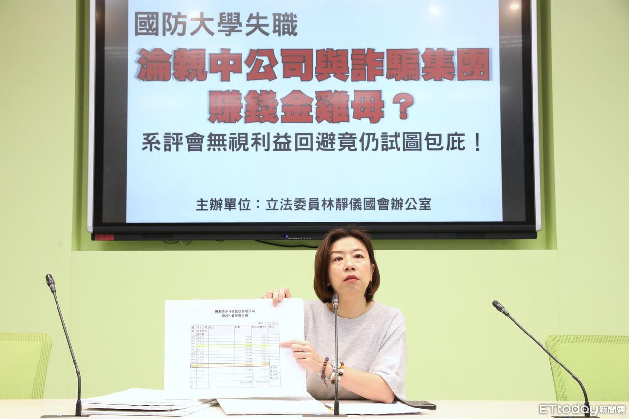 ▲民進黨立委林靜儀召開「國防大學失職淪親中公司與詐騙集團賺錢金雞母?系評會無視利益回避竟仍試圖包庇?」記者會。(圖/記者屠惠剛攝)