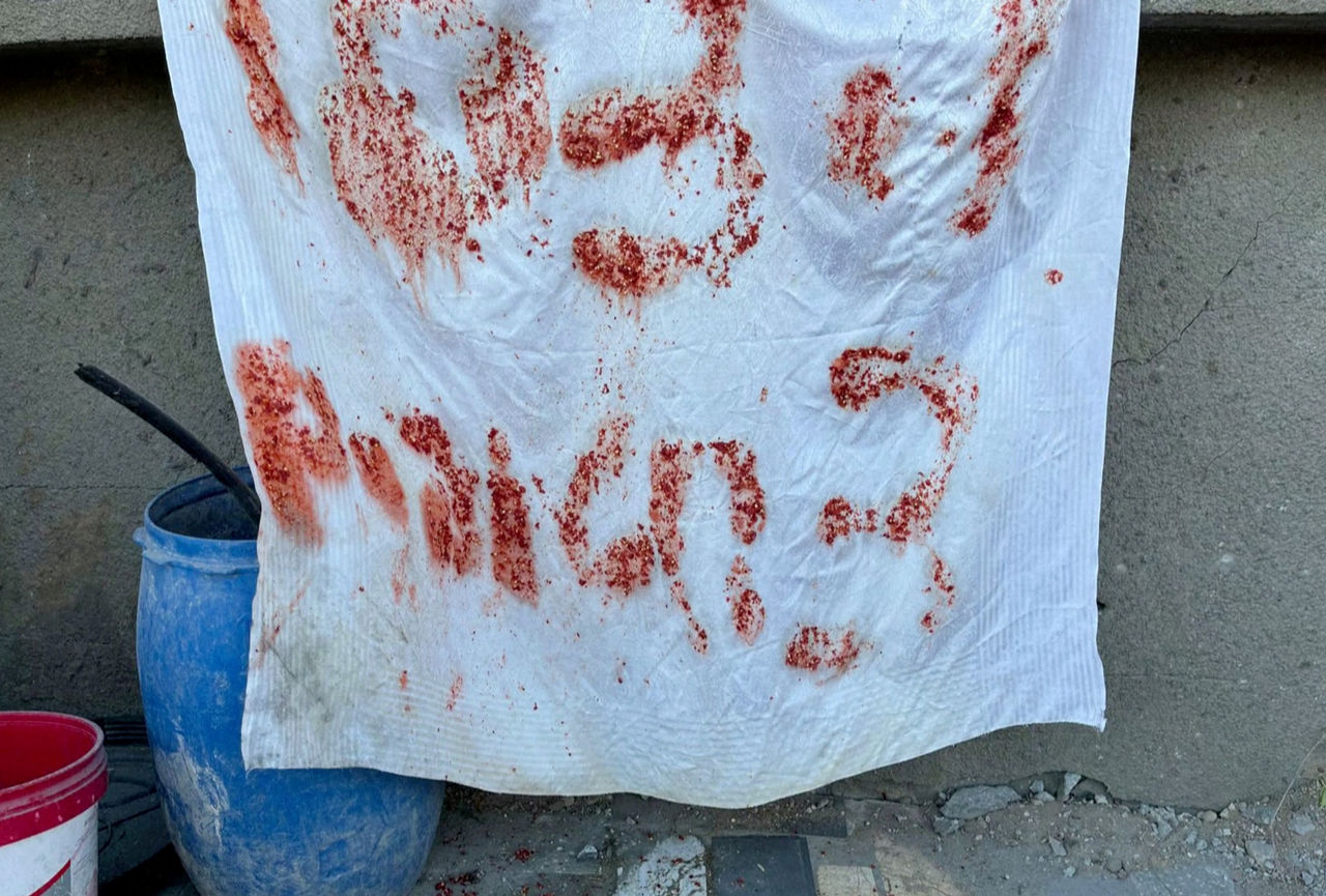 ▲以色列3名人質在慘遭誤殺前,用廚餘寫下求救字句SOS。(圖/路透)