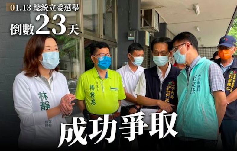 透過臉書發文說明推動「台中海線鐵路雙軌化」計畫的過程,林靜儀也呼籲台中鄉親支持她連任,繼續推動中二發展,讓有專業、肯為地方肯打拚的她繼續留在立法院。