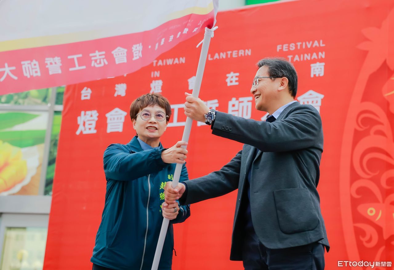 ▲2024台灣燈會睽違16年再次於台南璀璨登場,市府舉辦2024台灣燈會志工誓師大會,現場計400位志工齊聚誓師,由副市長趙卿惠代表市長黃偉哲授旗予產、官、學三方之燈會志工團隊代表。(圖/記者林東良翻攝,下同)