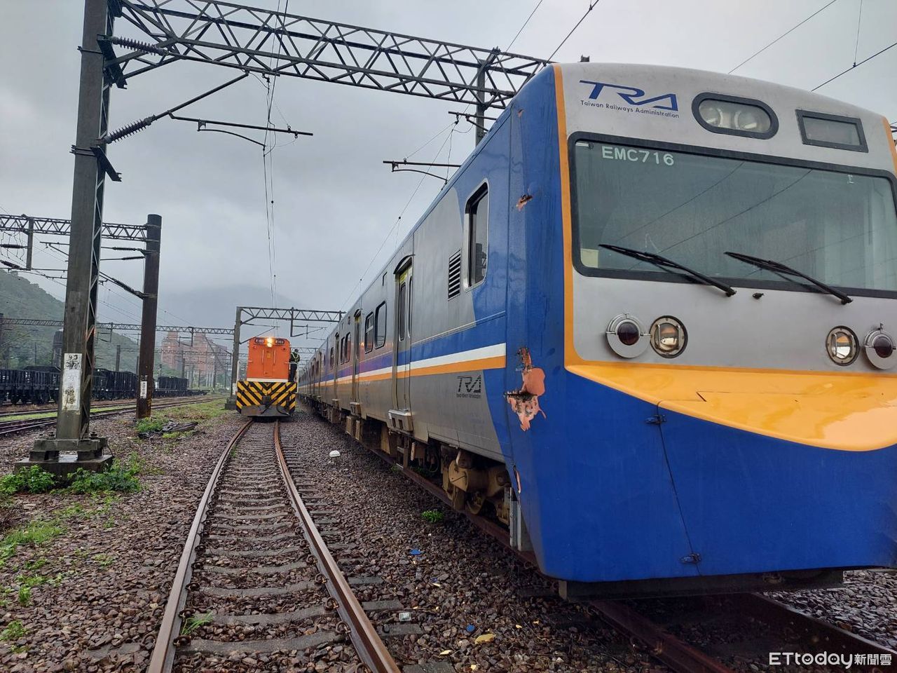 ▲台鐵調車機車頭擦撞EMU700型區間車,導致車頭破損。(圖/讀者提供)