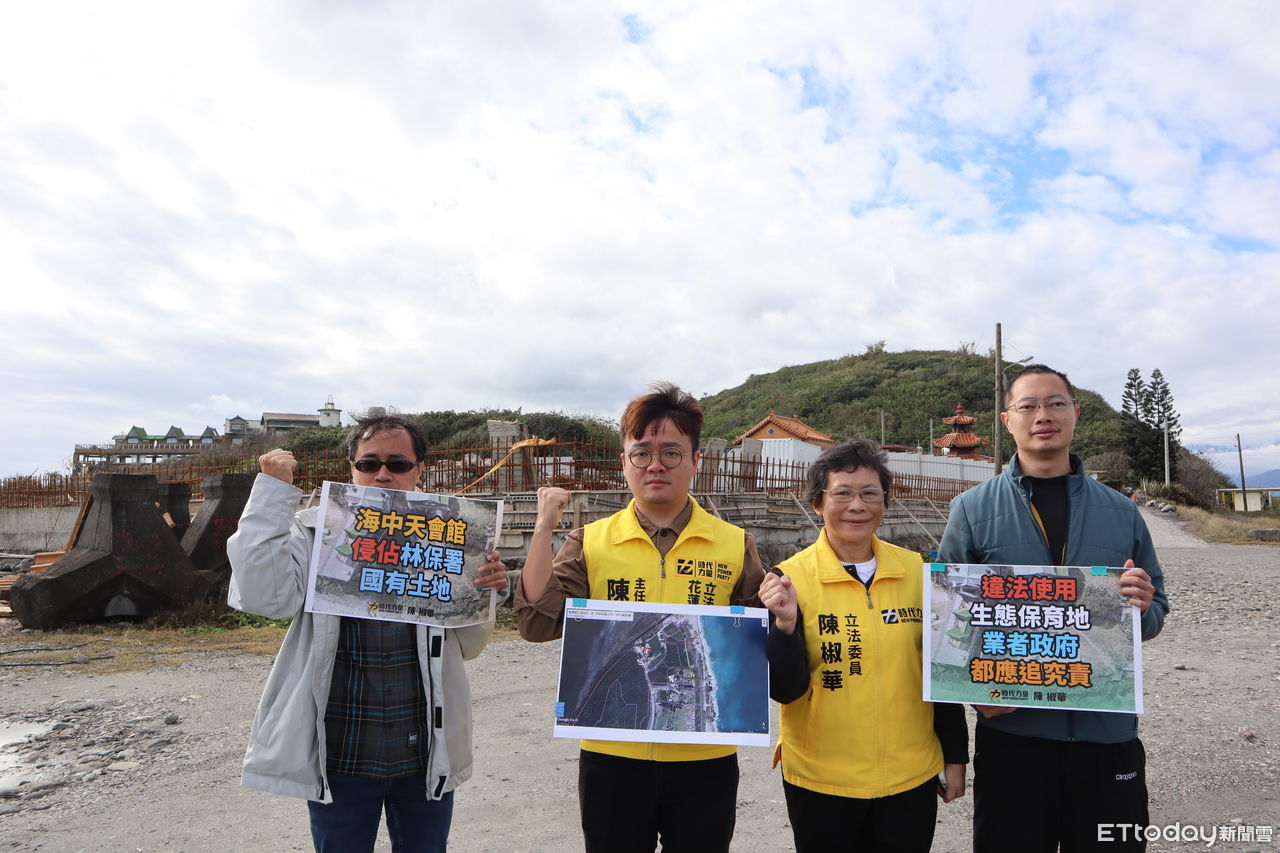 ▲時代力量立委陳椒華於花蓮壽豐海中天會館前召開「觀光業者疑不當開發,海岸保護成重大危機」記者會。(圖/記者王兆麟攝,下同)