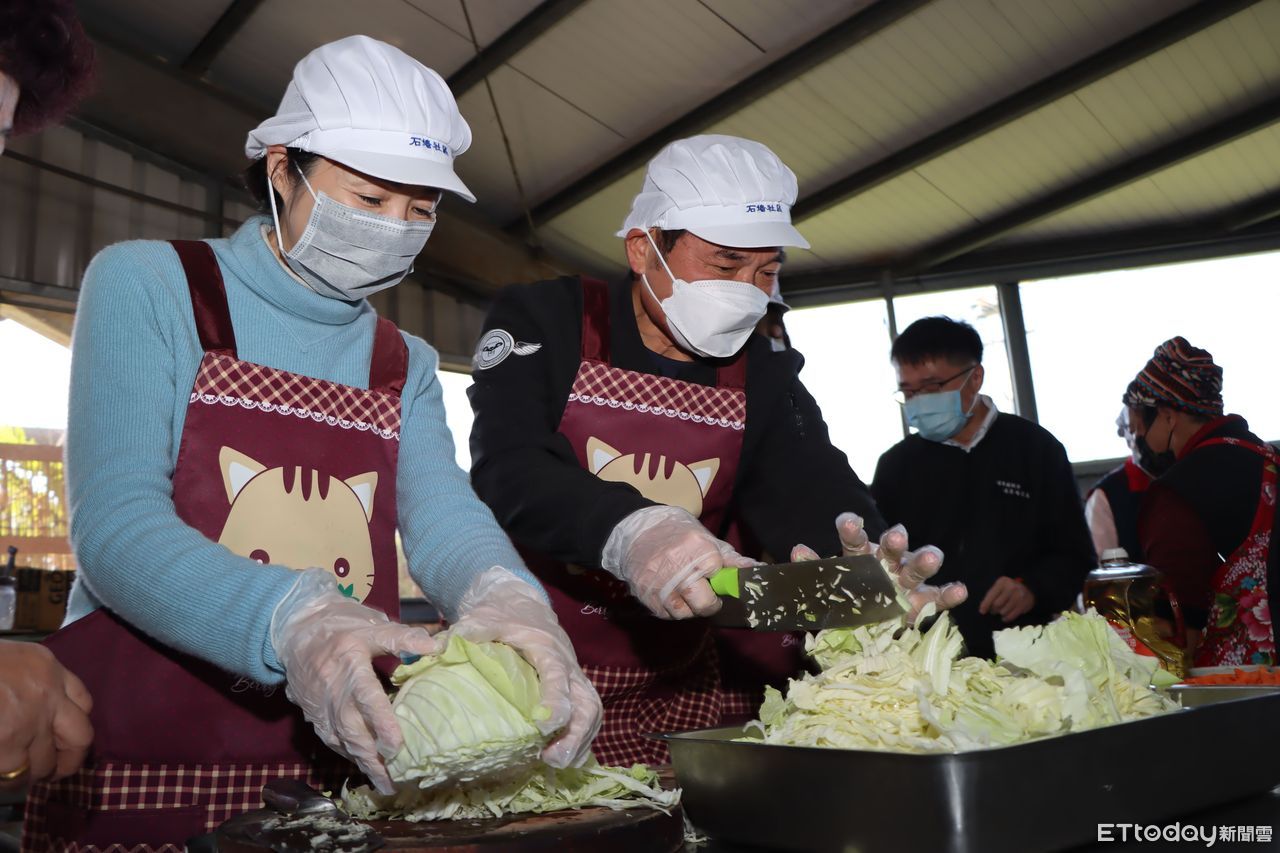 ▲鍾東錦就職苗栗縣長一周年,到社區關懷據點,夫妻化身廚工切菜。(圖/苗栗縣政府提供)