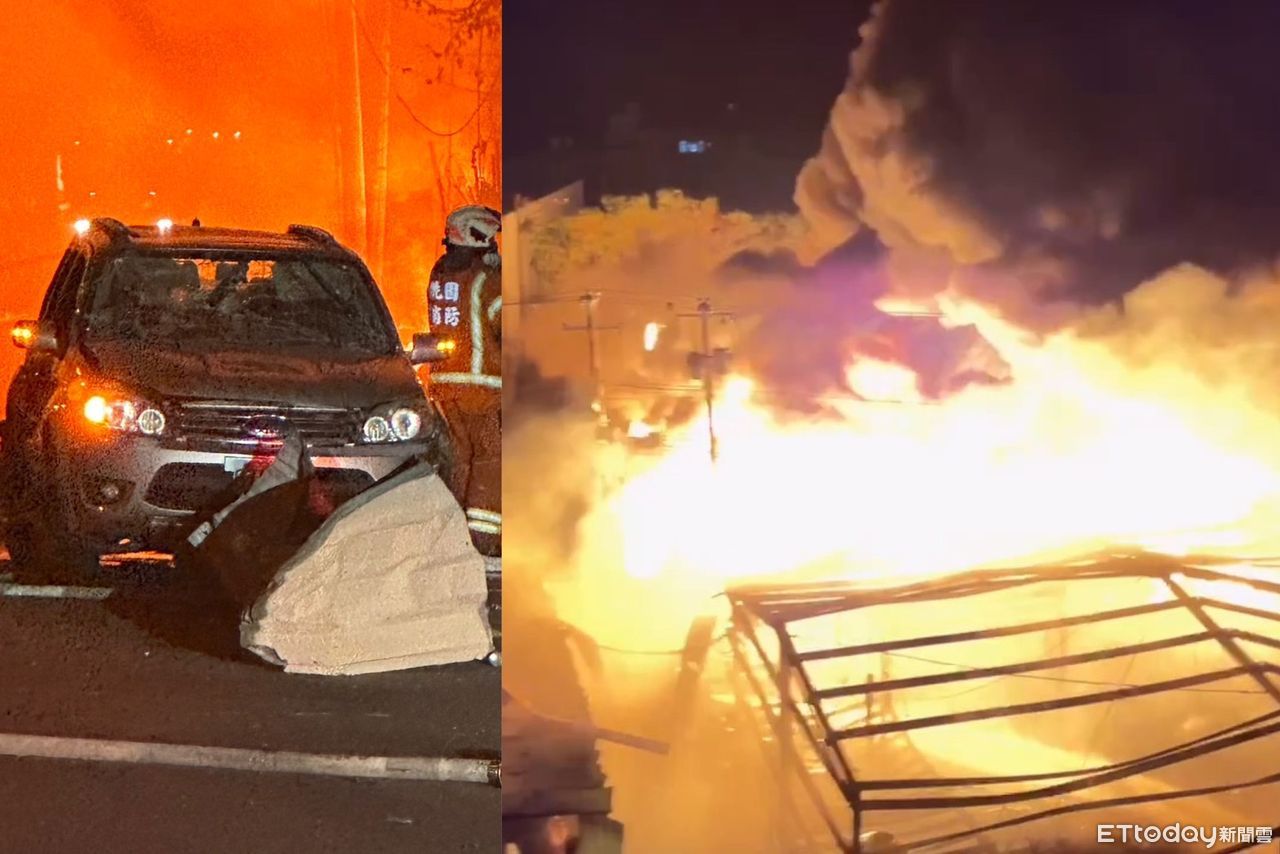 桃園市龜山區一處存放石化工業設備的冷媒工廠,今日16時55分發生嚴重火警,目前已知3名員工受傷被送醫搶救中。現場濃煙一度往國道、附近道路飄竄,其中一名楊男在火警當下路過,結果車輛被爆炸波及爛毀。現場制高點拍攝畫面曝光,只見工廠全面燃燒,完全看不出原貌,猶如遭轟炸過一般,相當驚悚。