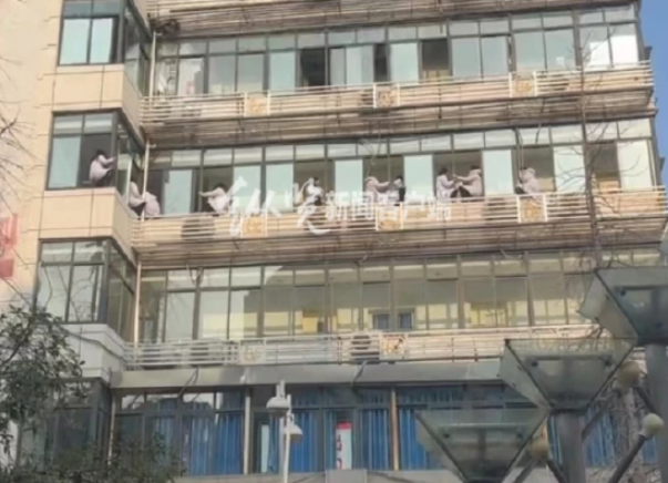 但對於多名醫護人員坐在窗邊的原因,她稱,醫院領導在處理此事,具體情況她並不清楚,關於此事醫院會進行解釋。