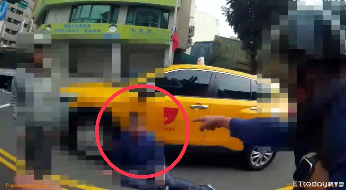 ▲台中市一名王男(右)不滿妻子祝女(左)疑似跟小黃運將歐男(中)發生拉扯,在警方面前一拳擊倒對方。(圖/記者許權毅翻攝)
