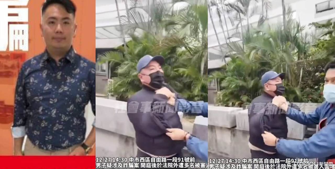 ▲陳姓男子假冒賴順仁服務團隊人員詐財騙色,27日下午到地院出庭後遭圍堵。(圖/翻攝社會事影音平台)
