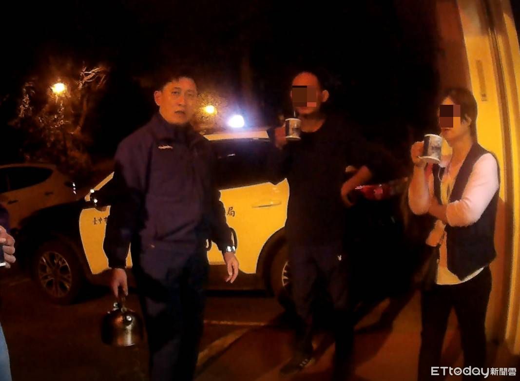▲▼陳姓男子攀登鳶嘴山,因未戴頭燈受困山區,搜救人員上山尋獲,員警遞上熱熱的薑茶給他暖身。(圖/記者李陳信得翻攝)