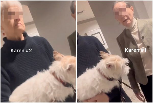 ▲其中一名白人女子用力推人,卻又一邊說自己被送貨員襲擊。(圖/翻攝自TikTok)