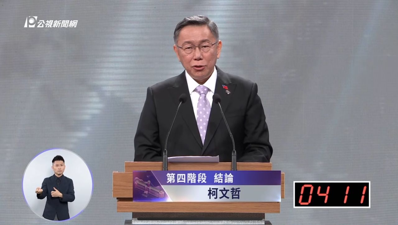 ▲民眾黨總統候選人柯文哲於總統辯論會結論。(圖/翻攝自YouTube/公視新聞)