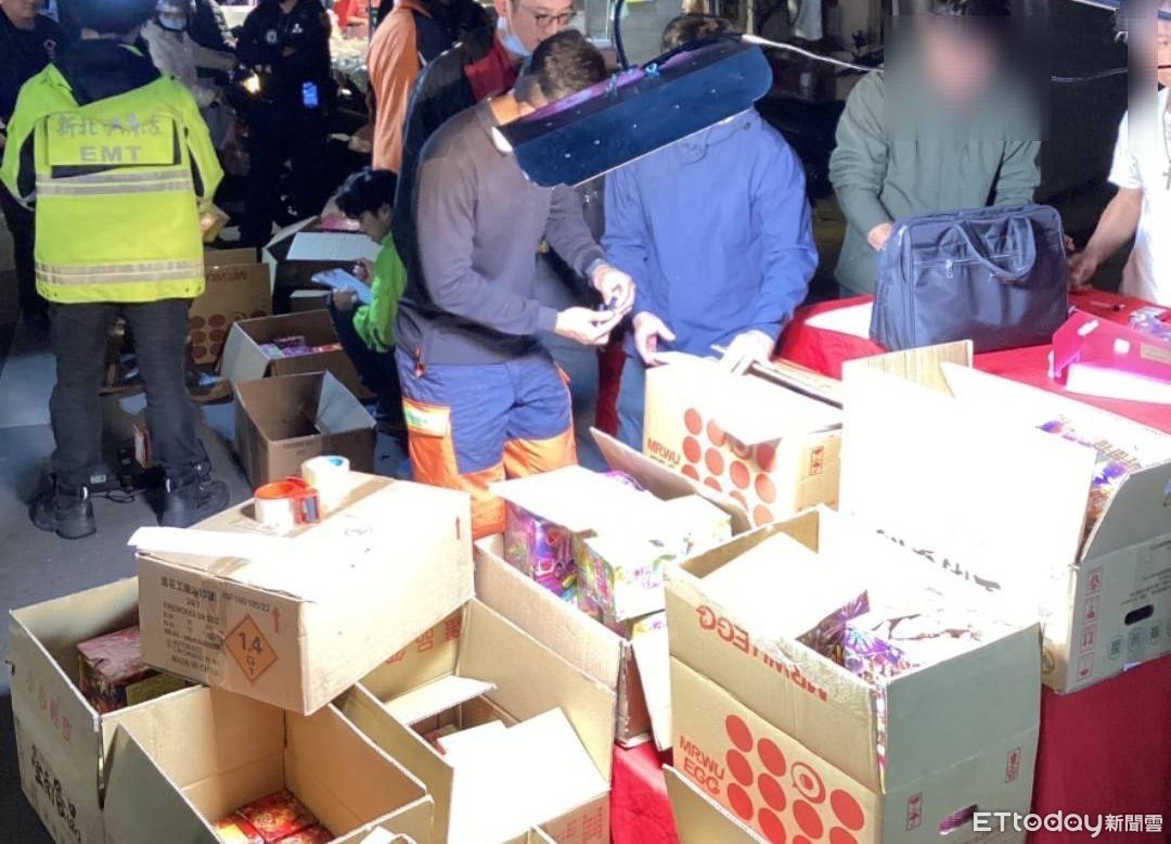 新北消防局樹林分隊前天12月30日晚間,在樹林區博愛夜市巡查,發現一家攤販違規存放販賣大量爆竹煙火,經初步檢測,總重112.16公斤,其中火藥量更高達22.81公斤。超量4倍,樹林分隊隨即進行封存帶回進行處理,以確保不會對周遭居民與逛夜市民眾帶來任何潛在的危險。