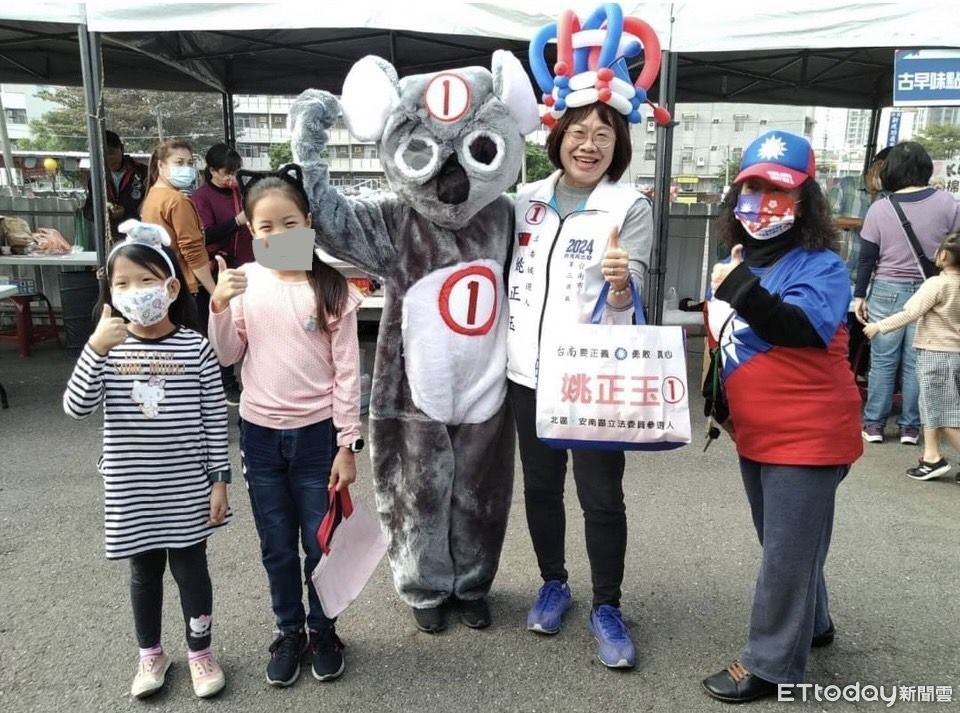 ▲台南市立委第三選區(北區安南區)候選人姚正玉元旦在小北夜市場地舉辦「正義迎新、元旦有好康」的親子歡樂營。(圖/記者林東良翻攝,下同)