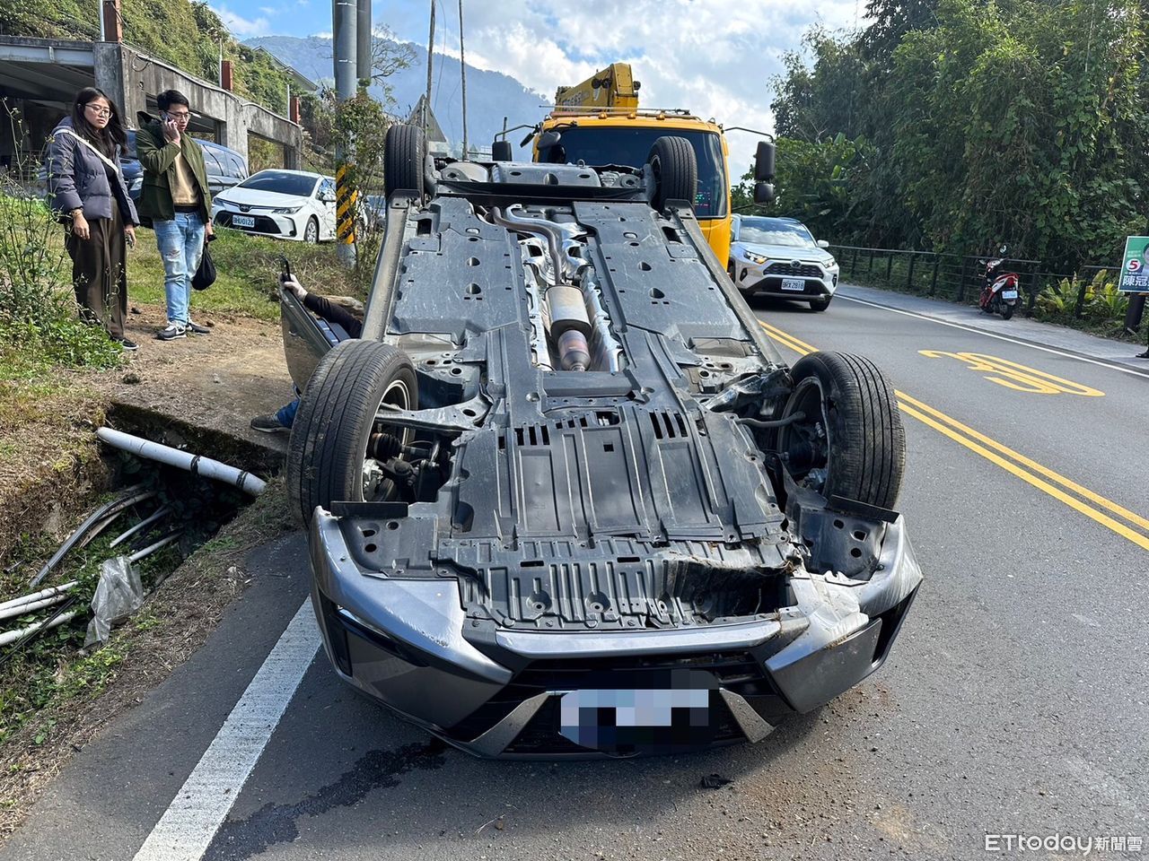 迎來2024年第一天,不少民眾特地上山欣賞新年曙光,不過一位男子與友人至阿里山看完曙光後,行經台18線63公里處時疑似因睡眠不足恍神,下山過彎時失控自撞,當場「烏龜翻」四輪朝天,所幸2人僅受輕傷,自行脫困,詳細肇事原因還有待進一步釐清。