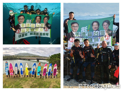 2024總統暨立委大選正式進入倒數10天,民進黨從北到南發動全台街頭行動,總統候選人賴清德帶頭,以「台灣美德站出來」為題,串連各地黨公職與候選人,站上路口向民眾拜票。屏東縣第二選區(屏南)立委候選人徐富癸選區內17個鄉鎮的黨籍鄉鎮長、縣議員除了共同站上街頭爭取鄉親支持外,支持者們也發揮創意,以實際行動相挺,包括墾丁潛水人員在魚群穿梭中舉牌、滿州SUP愛好者站在海中舉牌、身穿潮州歌仔戲裝扮拜票,在民進黨全台大串連的第一天,相當吸睛。