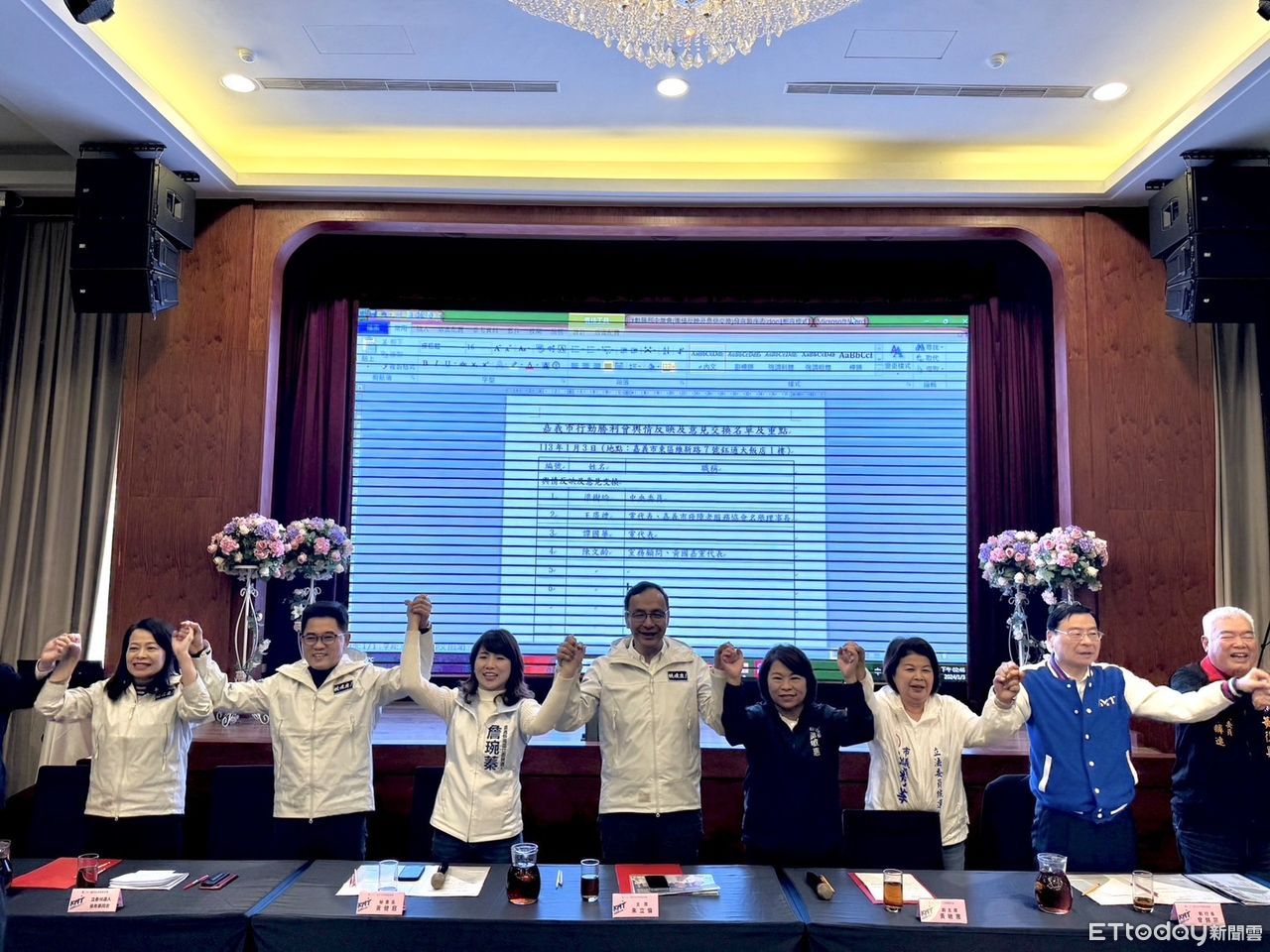 ▲ 國民黨行動中常會移師嘉義市,黨籍民意代表總動員為侯張兩人造勢 。(圖/張秀華競選總部提供)