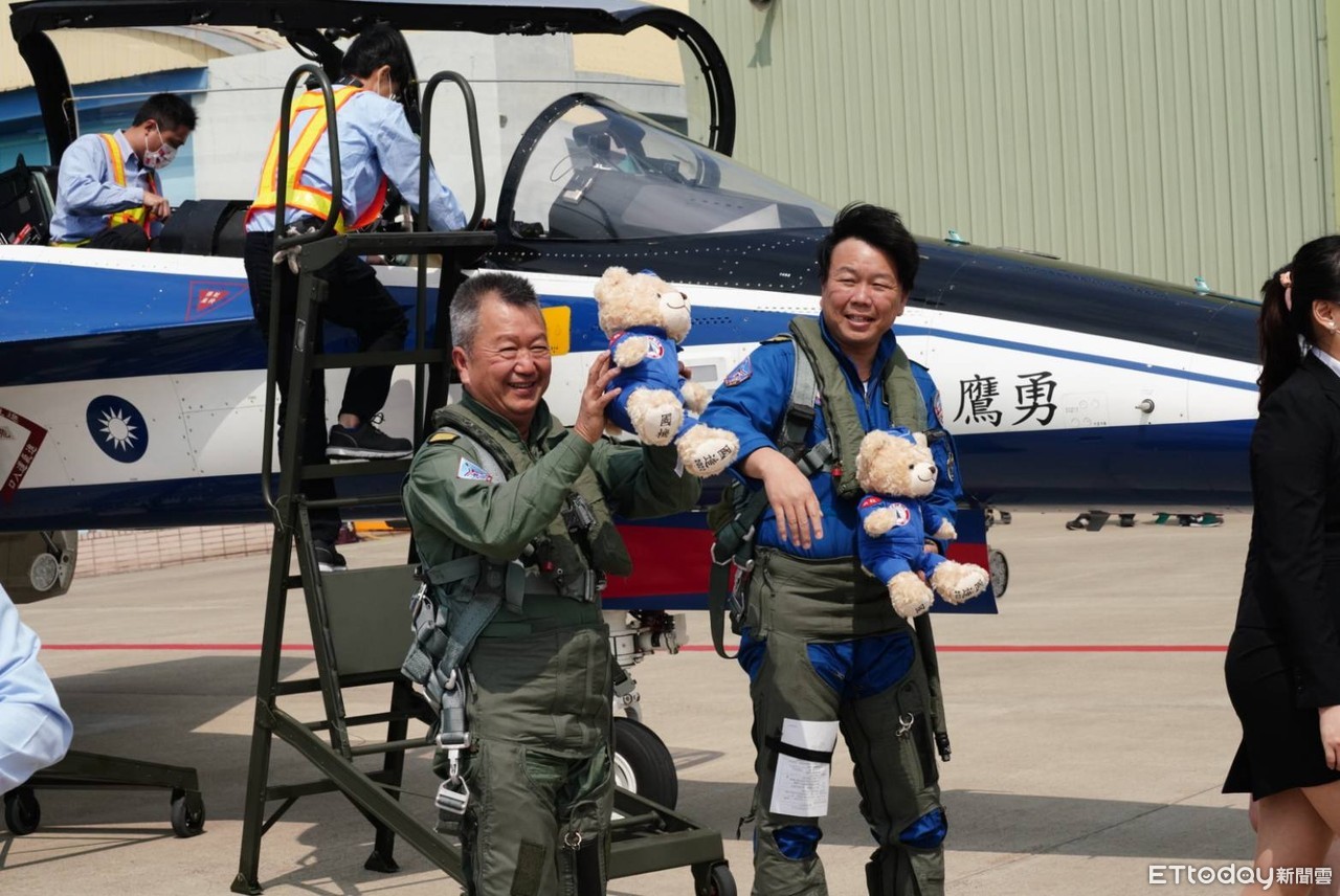 ▲漢翔董事長胡開宏親飛勇鷹高教機。(圖左一)